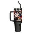 • Large stainless steel travel mug with handle and straw