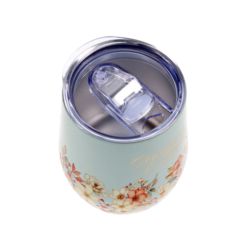 Stay refreshed and inspired with this elegant stainless steel travel mug. Featuring beautiful floral artwork and the comforting words of Psalm 23:6 in shimmering gold script, it keeps your drinks hot or cold while uplifting your spirit. Perfect for busy mornings, quiet moments, or faith-filled adventures, it combines beauty, function, and truth in one meaningful design.