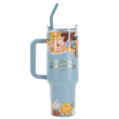 • Large Stainless Steel Travel Mug with Handle and Straw