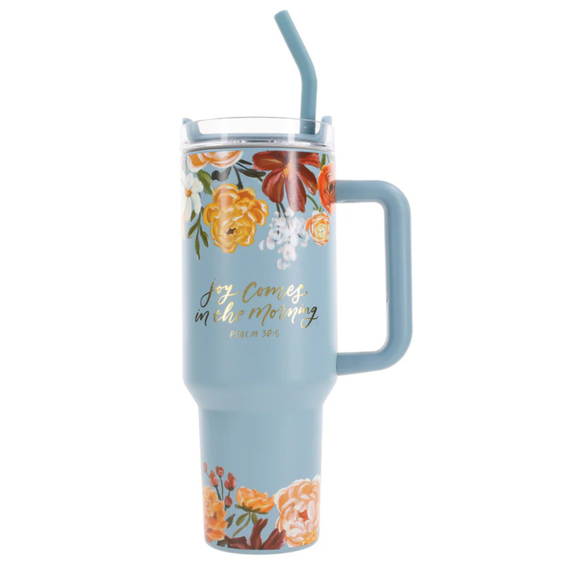 Keep yourself hydrated for longer with the Joy Comes in the Morning Large Stainless Steel Mug with Handle and Straw as you move throughout your busy day.
