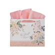 This large landscape gift bag features a pink and blue floral design with an uplifting scripture verse. Perfect for birthdays or special occasions, it comes with tissue paper and a matching gift tag for easy gift wrapping.