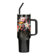 • Large stainless steel travel mug with handle and straw