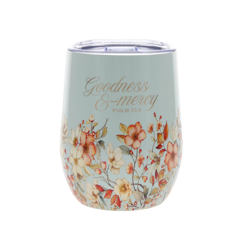 Stay refreshed and inspired with this elegant stainless steel travel mug. Featuring beautiful floral artwork and the comforting words of Psalm 23:6 in shimmering gold script, it keeps your drinks hot or cold while uplifting your spirit. Perfect for busy mornings, quiet moments, or faith-filled adventures, it combines beauty, function, and truth in one meaningful design.