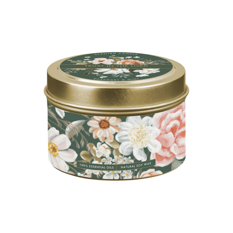 Product Name: Trust in the Lord Rosemary and Mint Scented Candle in Tin